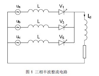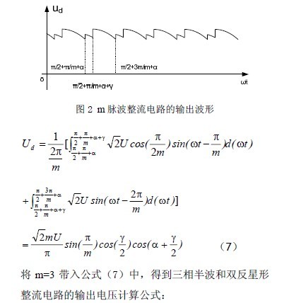 在帶有整流變壓器的可控硅整流電路中,整流變壓器的阻抗是一個(gè)很重要的參數(shù)。整流變壓器的阻抗導(dǎo)致了換相重疊的產(chǎn)生,使輸出電壓產(chǎn)生換相損失,而且使輸入功率因數(shù)降低。對(duì)整流器所產(chǎn)生的電流諧波含量也有一定的影響。由整流變壓器的阻抗而產(chǎn)生的換相重疊角對(duì)逆變電路的工作狀態(tài)有重要影響。因此,研究這些參數(shù)之間的定量關(guān)系是很必要的。參考文獻(xiàn)[1]、[2]、[3]中所列出的傳統(tǒng)電力電子學(xué)教材中,都對(duì)此有講述。但參考文獻(xiàn)[1]、[2]在計(jì)算公式的推導(dǎo)過程中有不妥之處,將電源的相數(shù)m 與整流電路輸出脈波數(shù)m 等同起來。且這些參考文獻(xiàn)中均未給出阻抗與整流器的功率因數(shù)之間的關(guān)系式。因此,作為補(bǔ)充,詳細(xì)推導(dǎo)這些參數(shù)間的關(guān)系是必要的。
